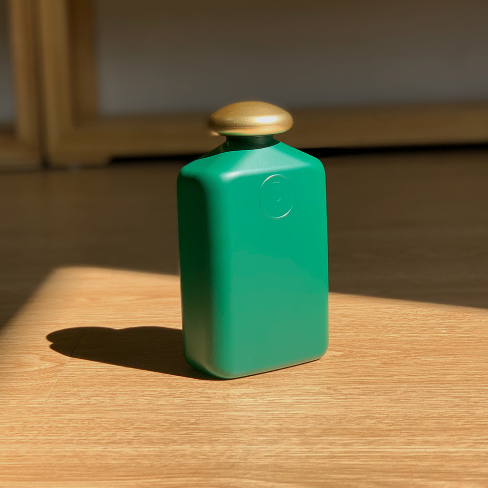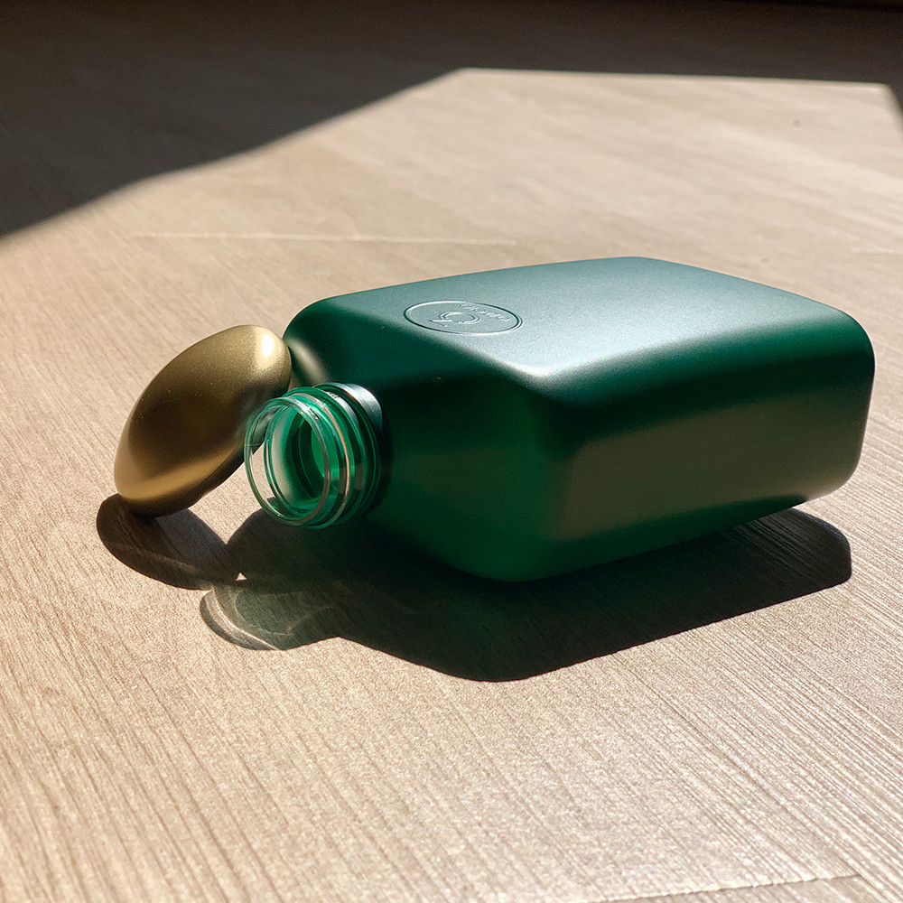 زجاجة هلام الاستحمام بالشامبو الأخضر المربع مع غطاء لولبي مصمم فريد من نوعه ، ونوعية جيدة ، وضيق جيد وحماية البيئة.