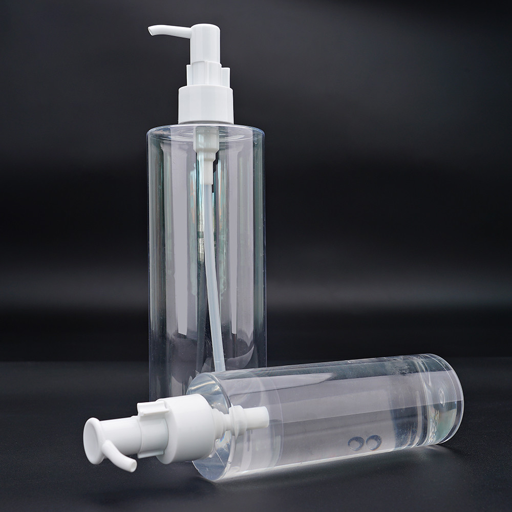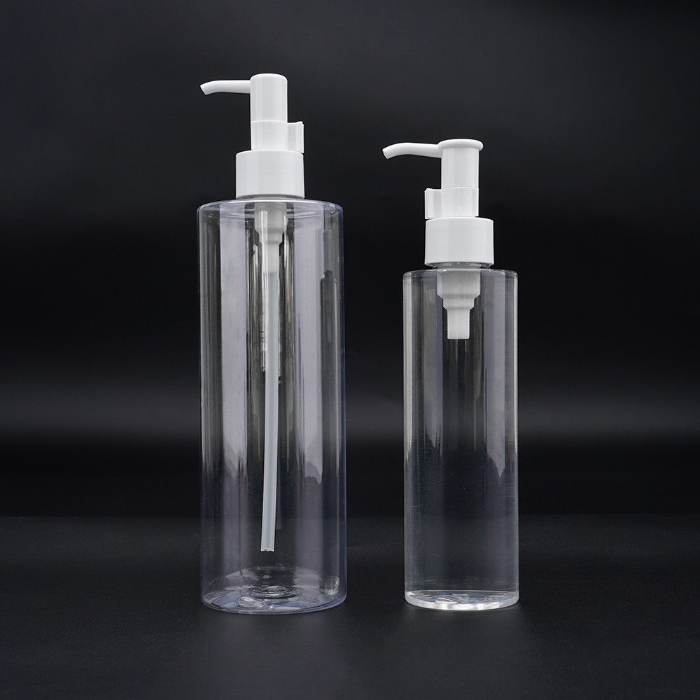 زجاجة مضخة مستحلب أسطوانية شفافة مناسبة للضروريات المنزلية ويمكن استخدامها لحليب الجسم والشامبو وجل الاستحمام.