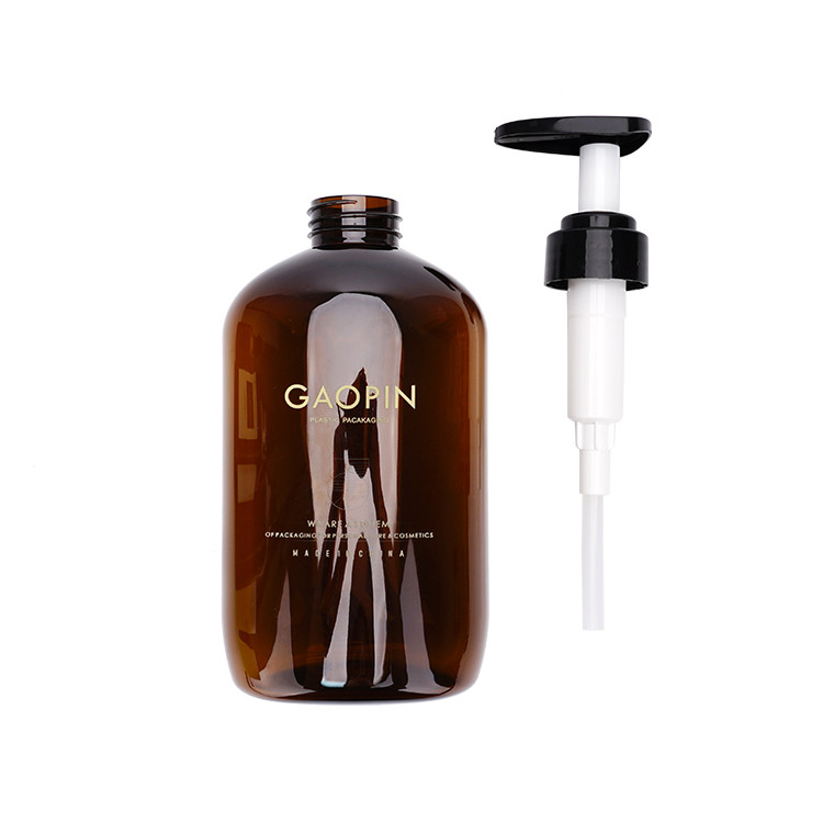 زجاجة فارغة لغسل الجسم بالشامبو ، مادة PET بنية للجسم مع مضخة لوشن سوداء ، 3 سعة متوفرة ، 340 مل ، 520 مل ، 650 مل.