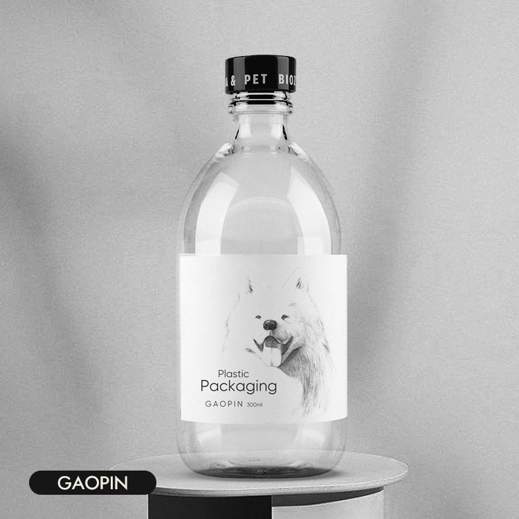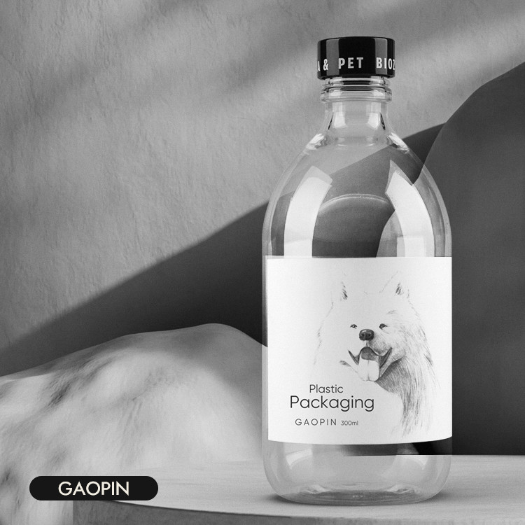 زجاجة شامبو شفافة أسطوانية الشكل ، مادة PET ، لمسة ناعمة.
